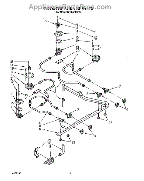 Parts for Whirlpool SF386PEWW3: 03 - Cooktop Burner Parts