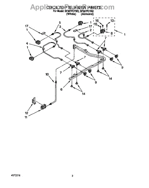 Parts for Whirlpool SF387PCYN2: 03 - Cooktop Burner Parts