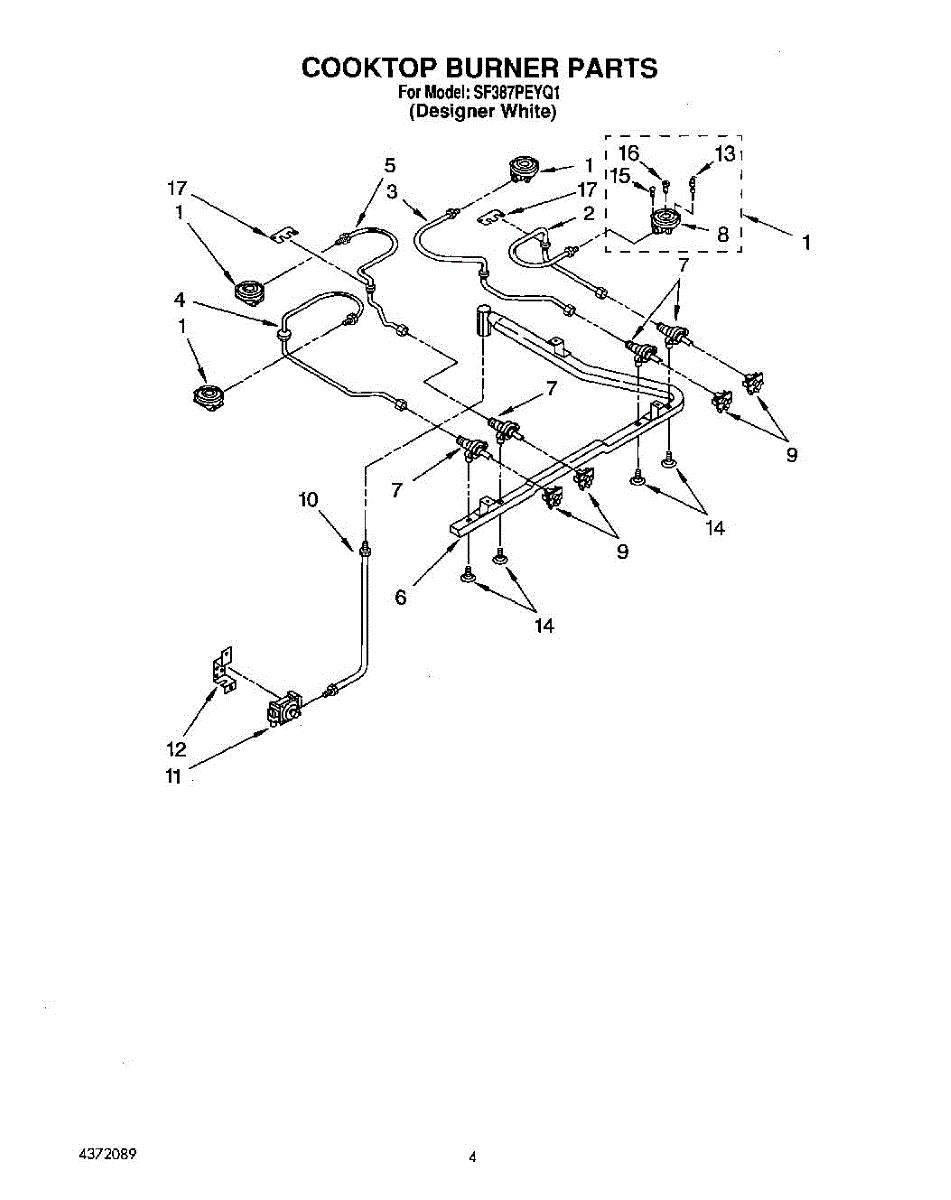 Parts for Whirlpool SF387PEYQ1: 03 - Cooktop Burner Parts