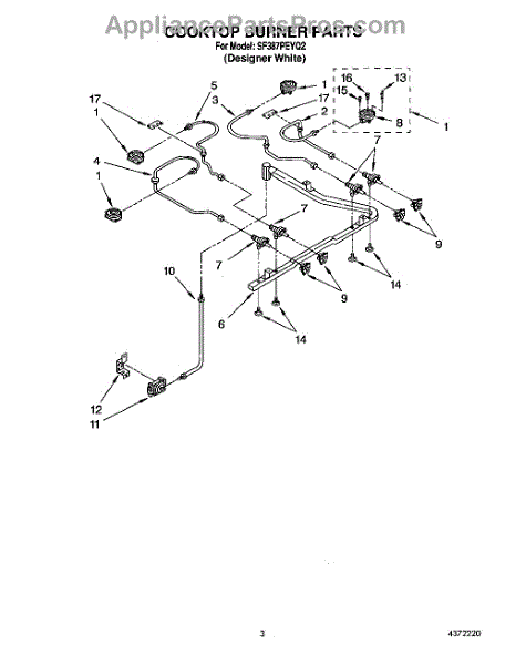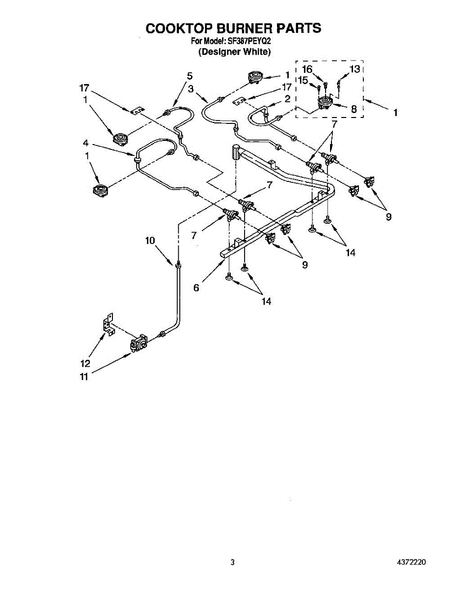 Parts for Whirlpool SF387PEYQ2: 03 - Cooktop Burner Parts