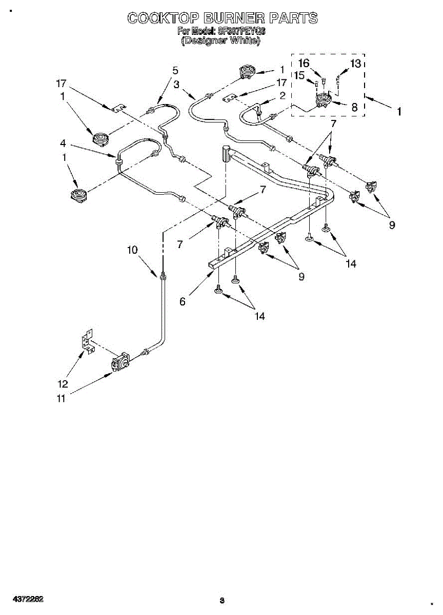 Parts for Whirlpool SF387PEYQ3: 03 - Cooktop Burner Parts