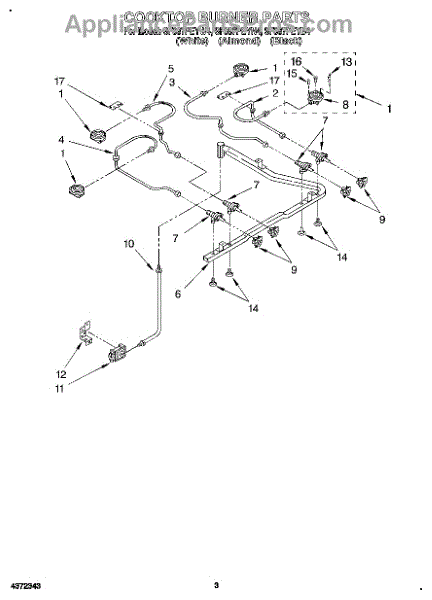 Parts for Whirlpool SF387PEYW4: 03 - Cooktop Burner Parts