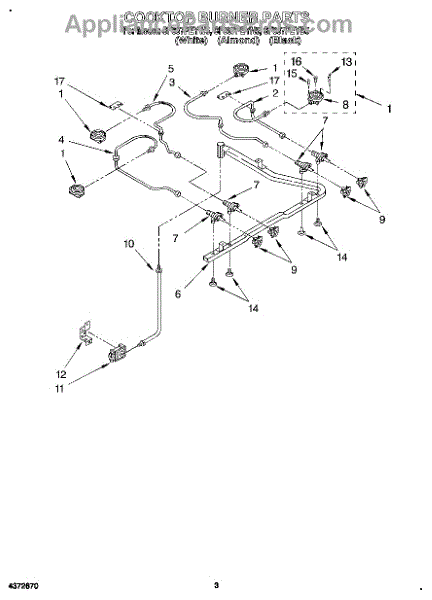 Parts for Whirlpool SF387PEYW5: 03 - Cooktop Burner Parts