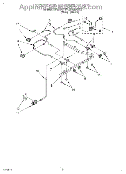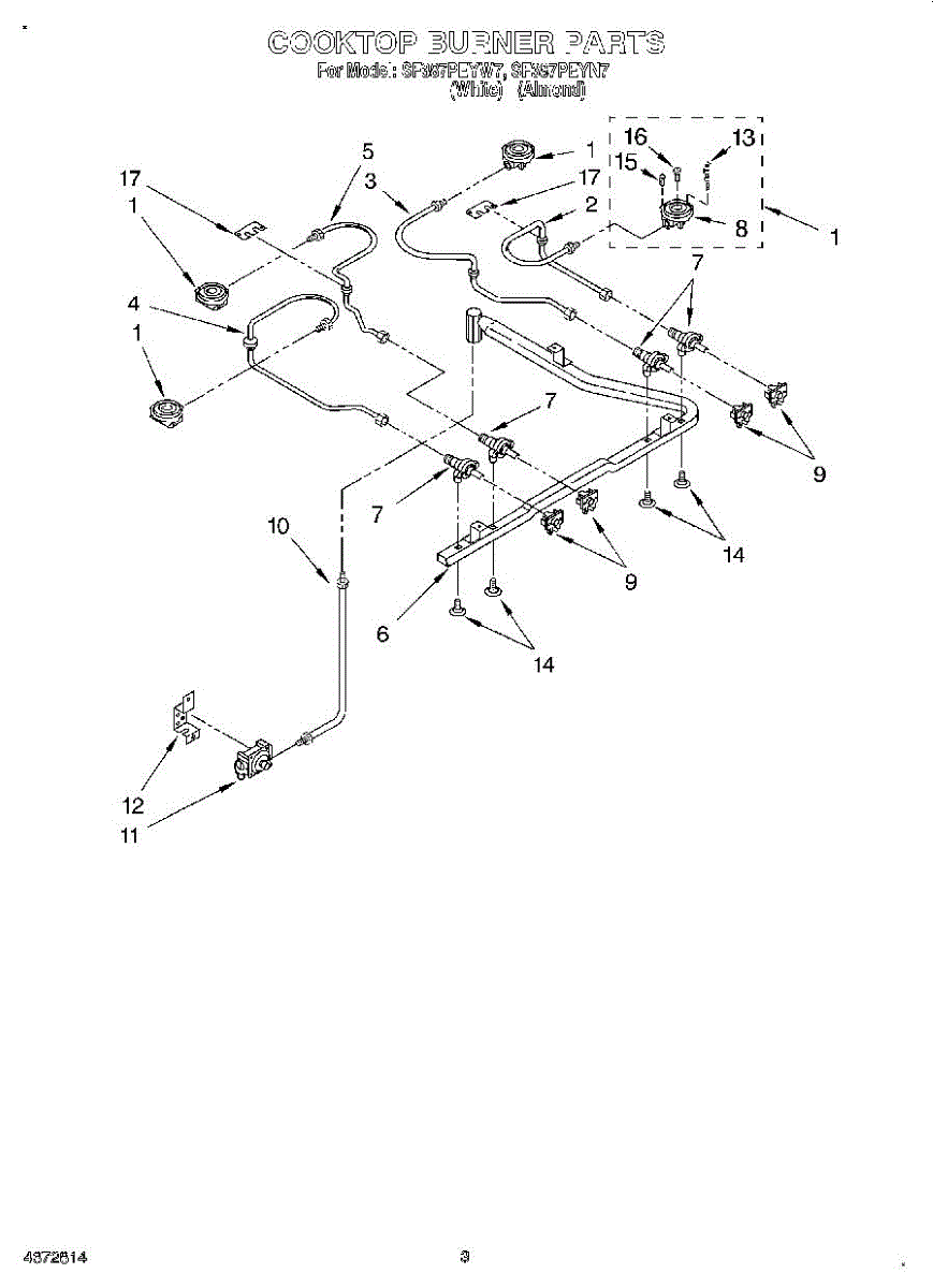 Parts for Whirlpool SF387PEYW7: 03 - Cooktop Burner Parts