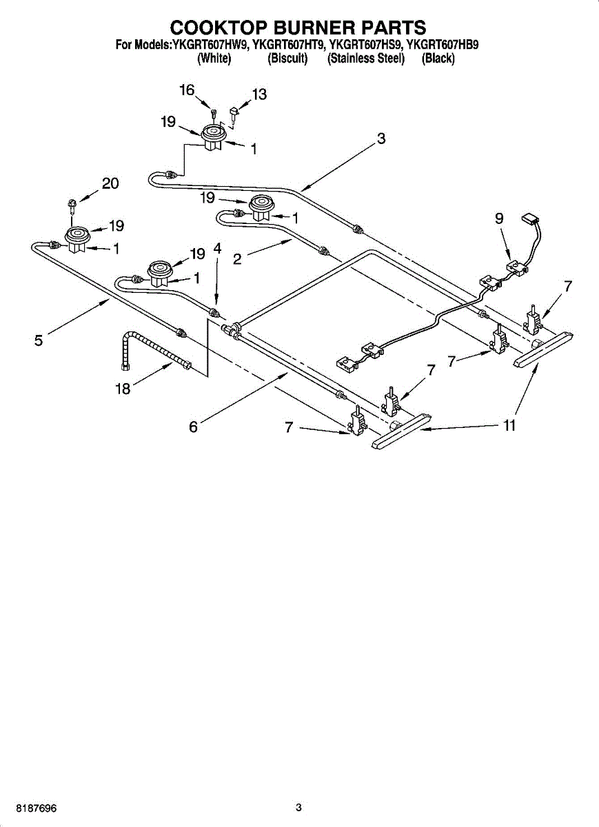 Parts for Whirlpool YKGRT607HW9: 02 - Cooktop Burner Parts