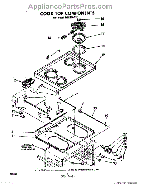 Parts for Whirlpool RGE970PW: 02 - Cooktop Components Parts