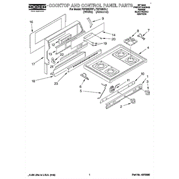 Parts for Roper FGP335BL1: 01 - Cooktop And Control Panel, Literature Parts