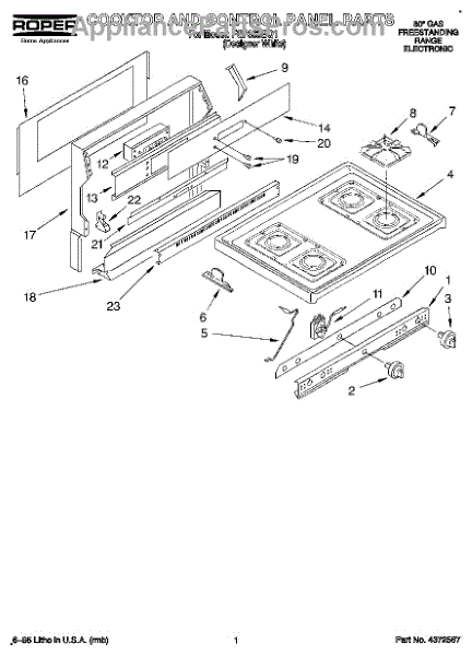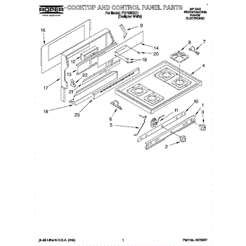 Parts for Roper FGP335BQ1: 01 - Cooktop And Control Panel, Literature Parts
