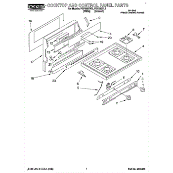 Parts for Roper FGP335BW2: 01 - Cooktop And Control Panel, Literature Parts