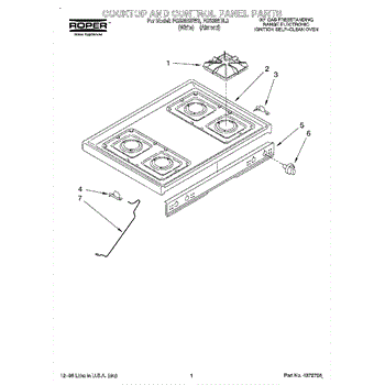 Parts for Roper FGS385BW3: 01 - Cooktop And Control Panel Parts