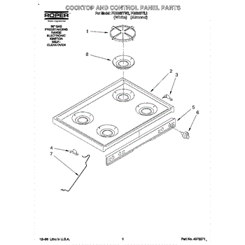 Parts for Roper FGS385YW2: 01 - Cooktop And Control Panel Parts