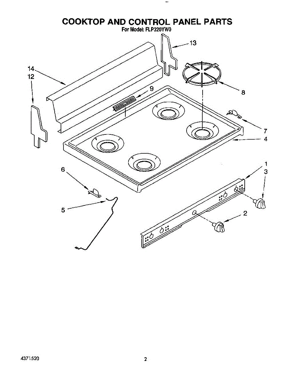 Parts for Roper FLP320YW0: 02 - Cooktop And Control Panel, Lit / Opti Parts