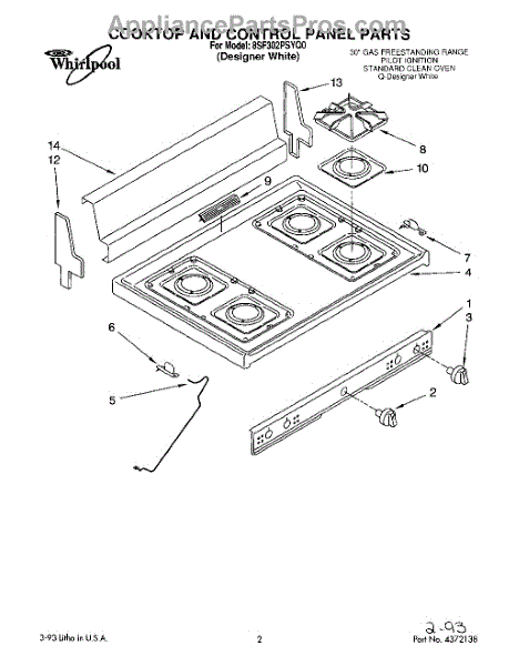 Parts for Whirlpool 8SF302PSYQ0: 01 - Cooktop And Control Panel, Lit / Optional Parts