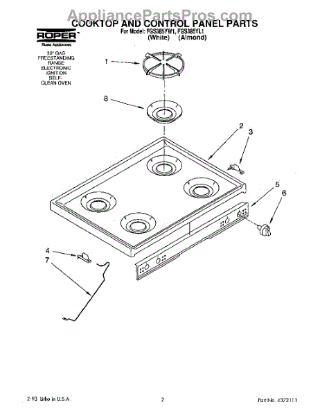 Parts for Whirlpool FGS385YL1: 01 - Cooktop And Control Panel Parts