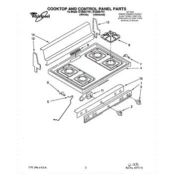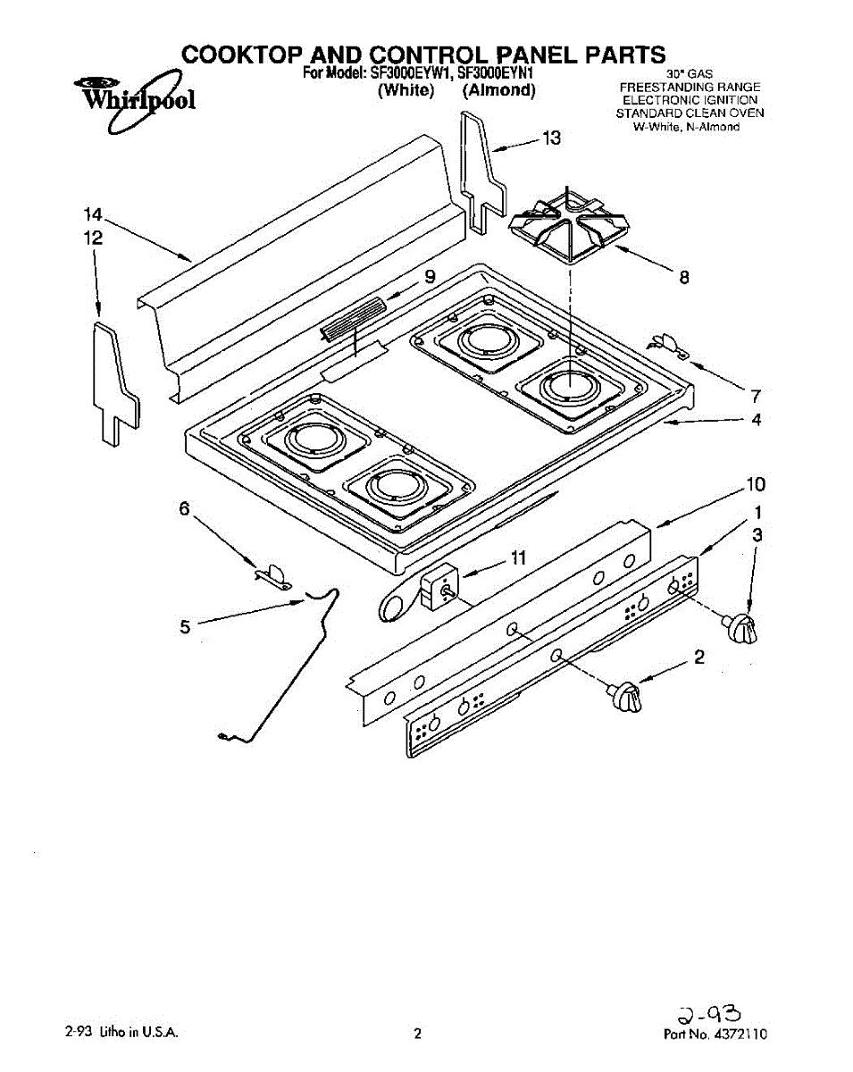 Parts for Whirlpool SF3000EYN1: 01 - Cooktop And Control Panel, Lit / Optional Parts