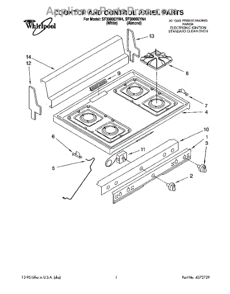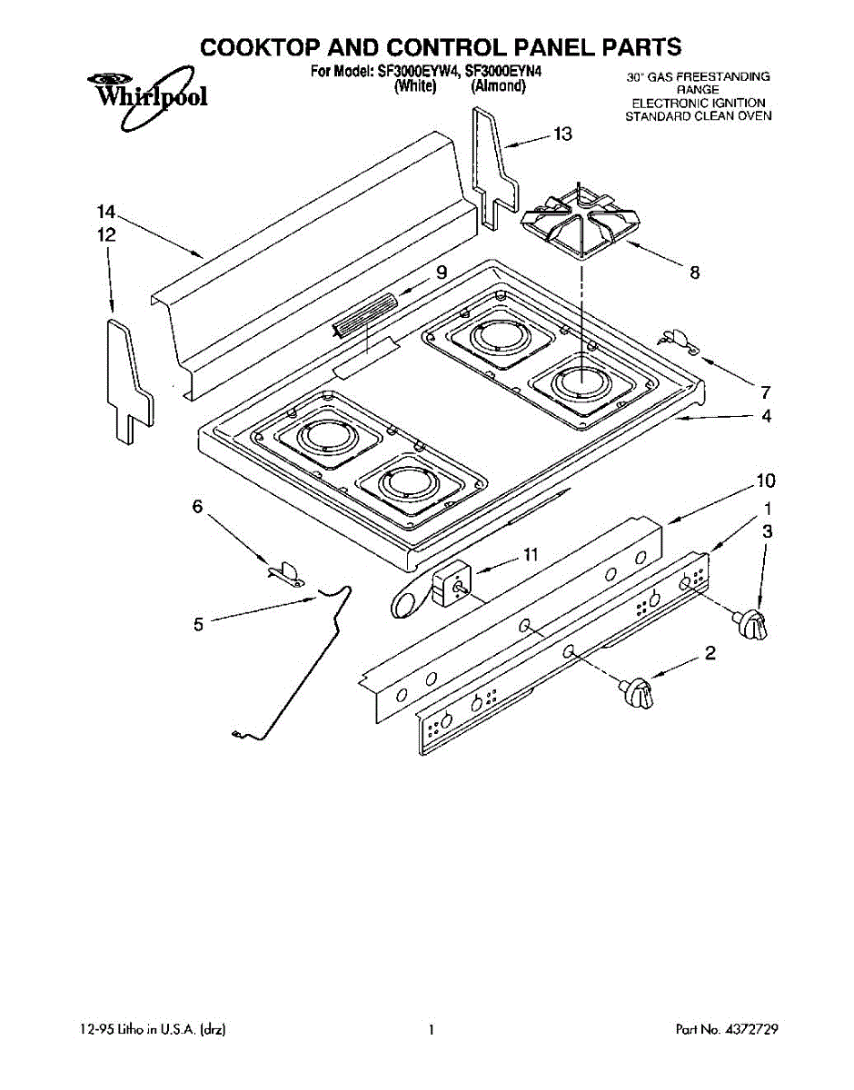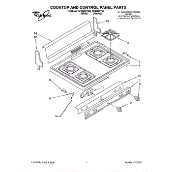 Parts for Whirlpool SF3000EYN4: 01 - Cooktop And Control Panel, Literature Parts