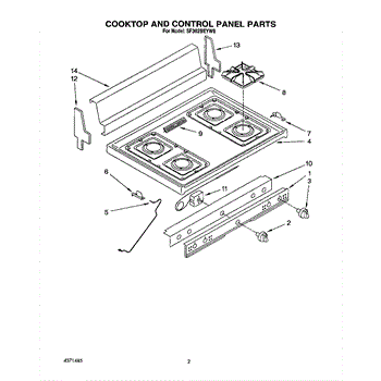 Parts for Whirlpool SF302BEYW0: 02 - Cooktop And Control Panel, Lit / Opti Parts