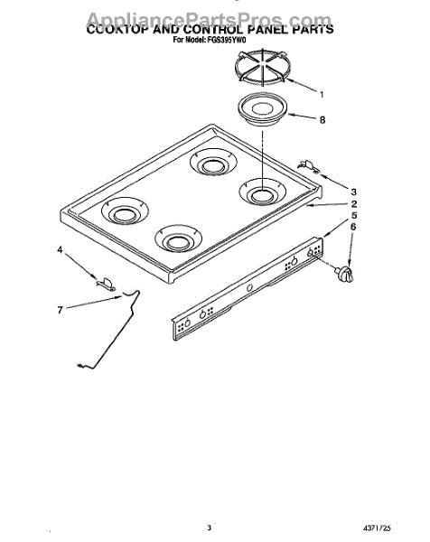 Parts for Whirlpool FGS395YL0: 03 - Cooktop And Control Parts