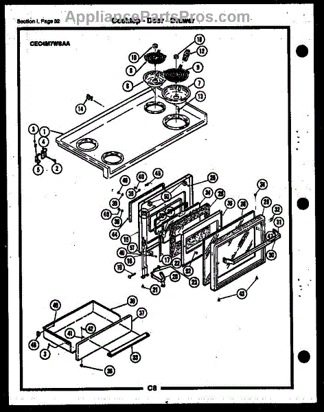 Parts for Frigidaire CEB3M2WSTB: 19 - Cooktop-Door-Drawer Parts