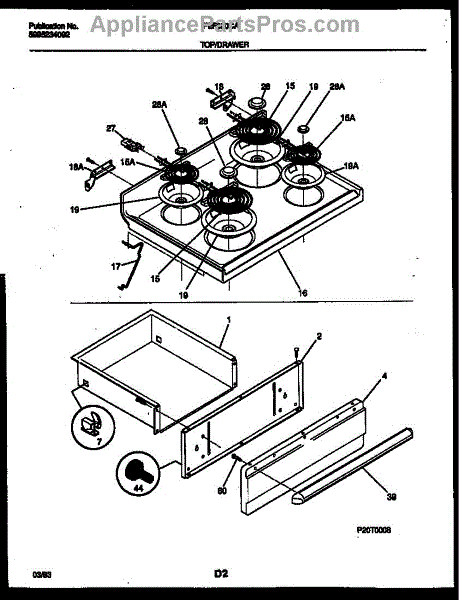 This main top is the flat cooktop surface that mounts over a range's burner box to provide a stable, finished cooking surface and protect internal components from spills and debris. It restores a level, secure area for burners and cookware. What it does: