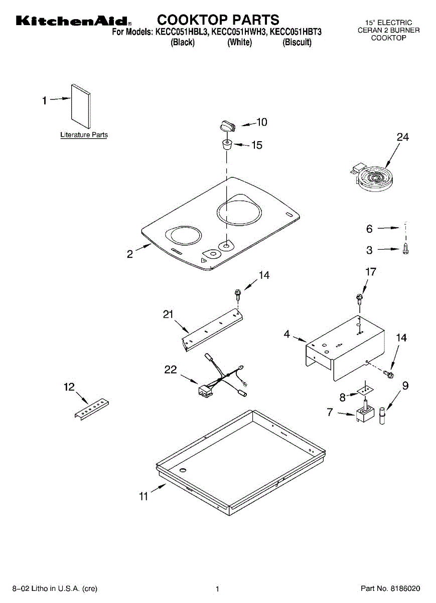 Hardware kit with screws and brackets to secure cooktop components. Replaces worn, missing, or damaged mounting fasteners for proper fit and stability.