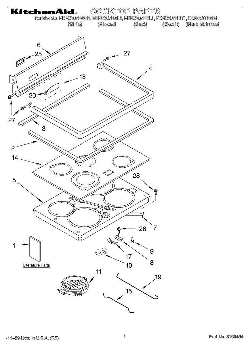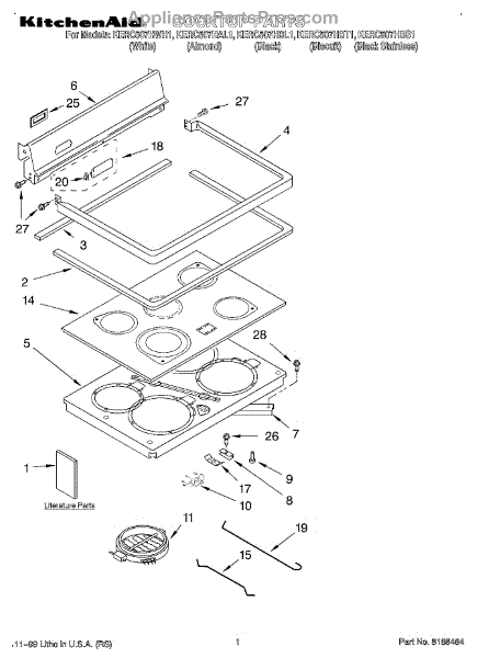 Parts for Kitchenaid KERC507HWH1: 01 - Cooktop, Literature Parts