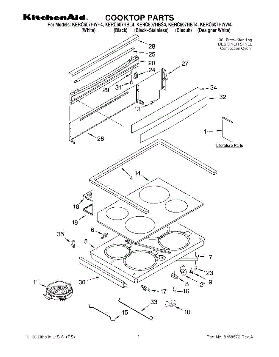 Parts for Kitchenaid KERC607HWH4: 01 - Cooktop, Literature Parts