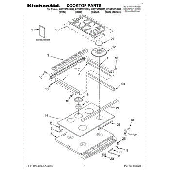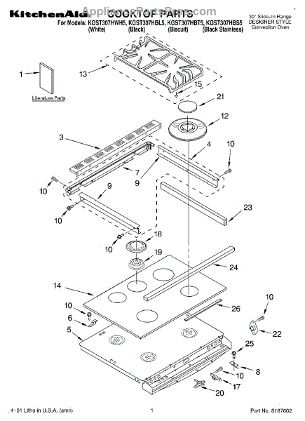 Replacement foot pad kit for range grates. Installs underneath grate legs to cushion and stabilize. Replace when worn, cracked, broken, or missing.
