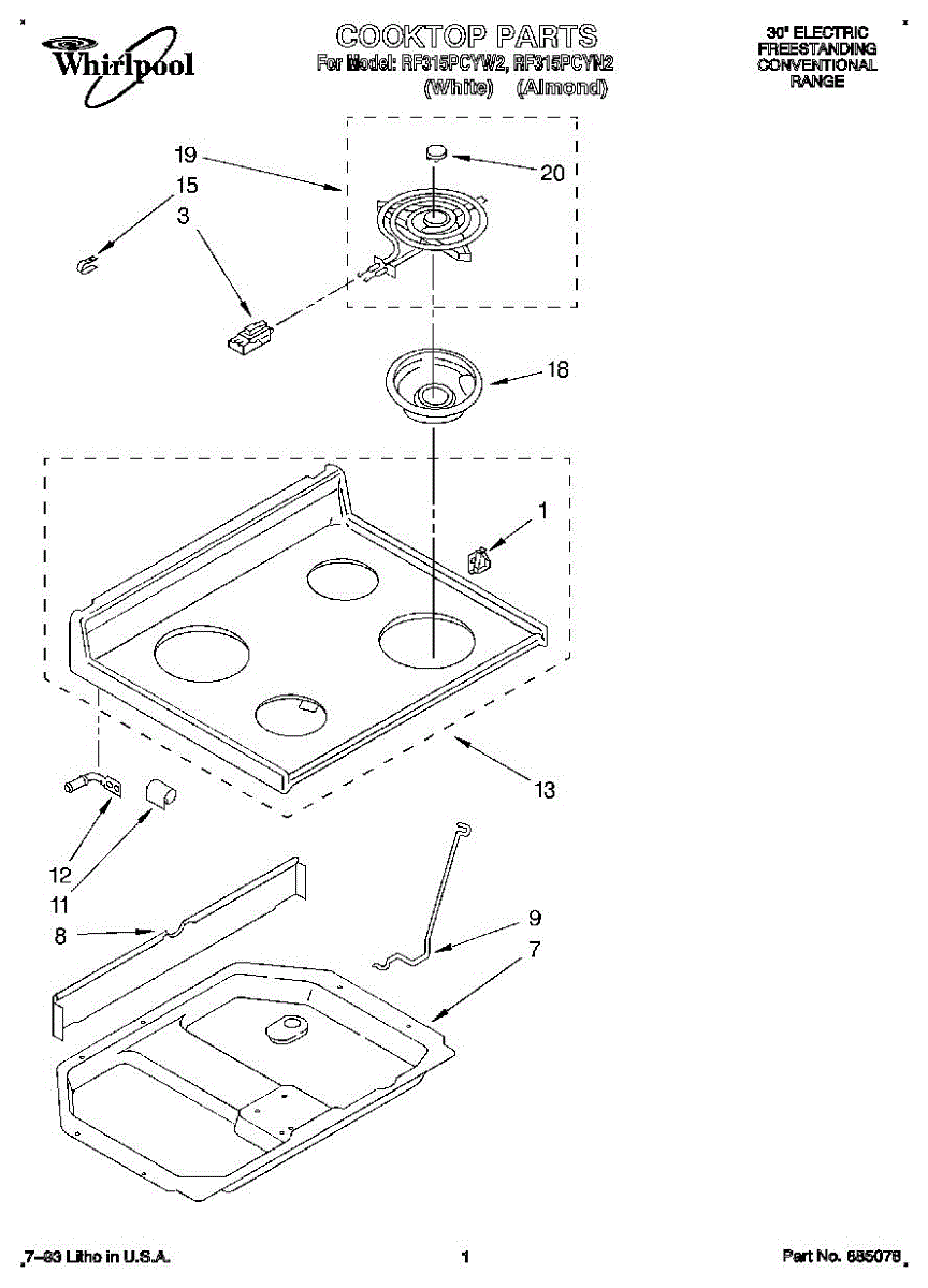 The 8-inch large Surface Element is an OEM replacement part for Whirlpool induction ranges. It serves as an integral independent heating zone to boil, sauté or simmer large pots quickly.