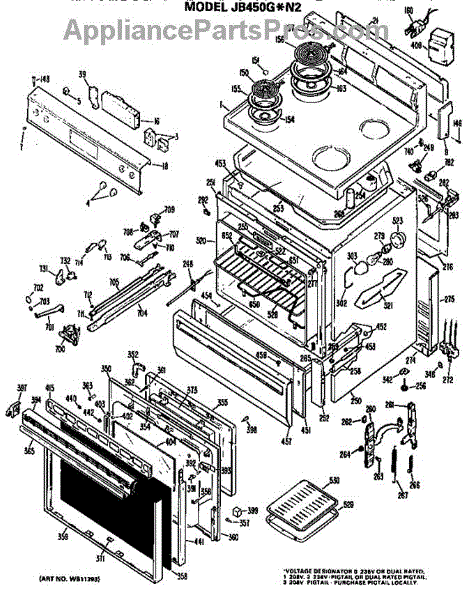 Parts for Ge JB450GN2: Cooktop / Main Body / Controls Parts