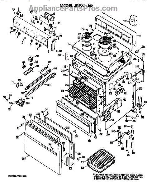 Parts for Ge JBP22*N2: Cooktop / Main Body / Controls Parts