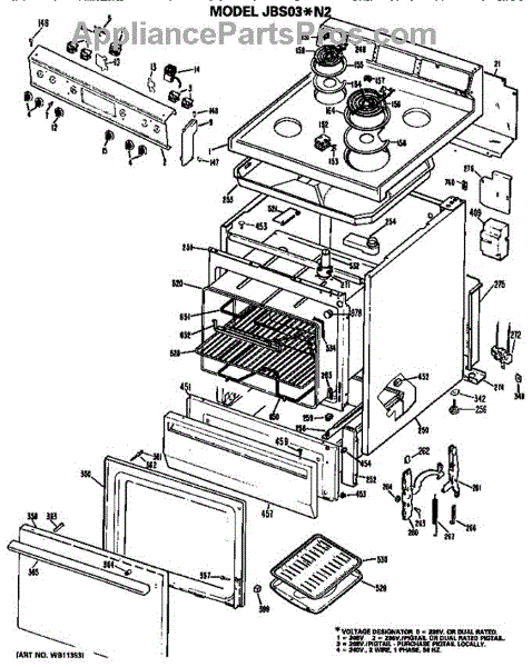 Parts for Ge JBS03N2: Cooktop / Mainbody / Controls Parts