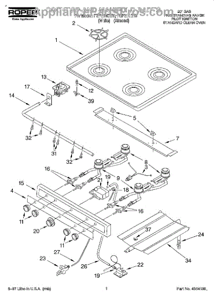 Parts for Roper FGP210EW0: 01 - Cooktop And Manifold Parts
