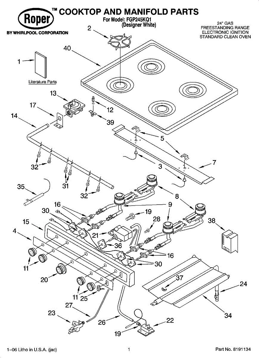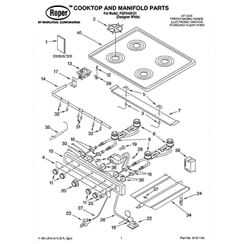 Parts for Roper FGP245KQ1: 01 - Cooktop And Manifold Parts
