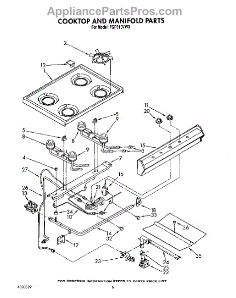 Parts for Roper FGP310VW3: 05 - Cooktop And Manifold, Lit / Optional Parts