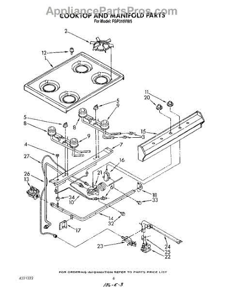 Parts for Roper FGP310VW5: 05 - Cooktop And Manifold, Lit / Optional Parts