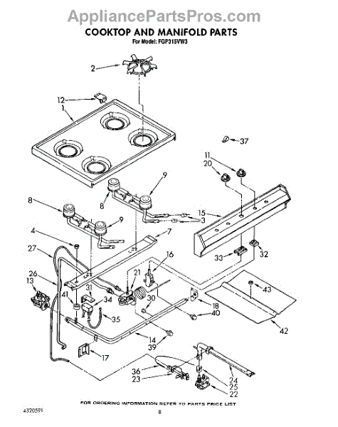 Parts for Roper FGP315VW3: 06 - Cooktop And Manifold, Lit / Optional Parts