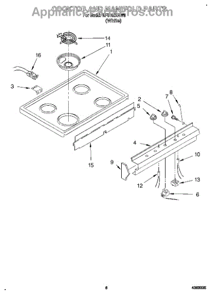 Parts for Whirlpool RF0100XRW8: 05 - Cooktop And Manifold Parts