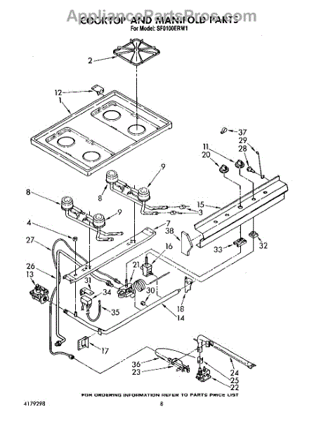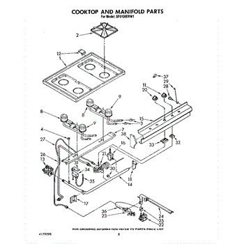 Parts for Whirlpool SF0100ERW1: 06 - Cooktop And Manifold, Lit / Optional Parts
