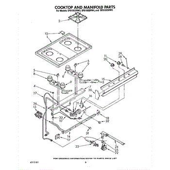 Parts for Whirlpool SF0100SRW5: 05 - Cooktop And Manifold, Lit / Optional Parts