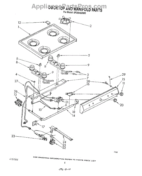 Parts for Whirlpool SF3004SRW0: 06 - Cooktop And Manifold , Literature And Optional Parts