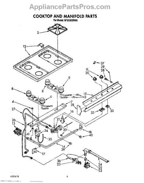 Parts for Whirlpool SF3020ERN6: 05 - Cooktop And Manifold, Lit / Optional Parts