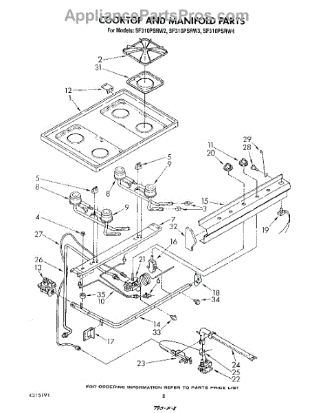 Parts for Whirlpool SF310PSRW3: 06 - Cooktop And Manifold , Literature And Optional Parts