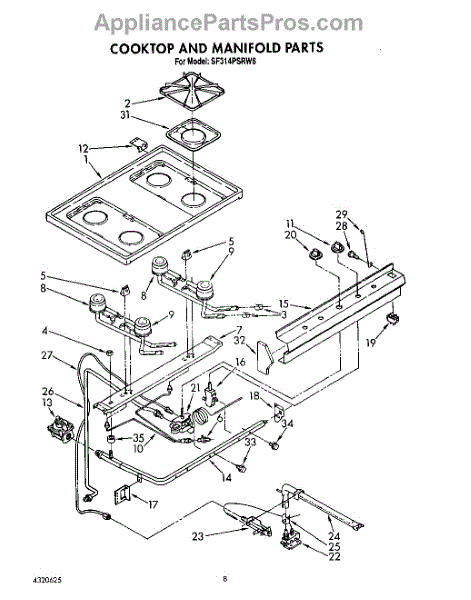 Parts for Whirlpool SF314PSRW6: 06 - Cooktop And Manifold, Lit / Optional Parts