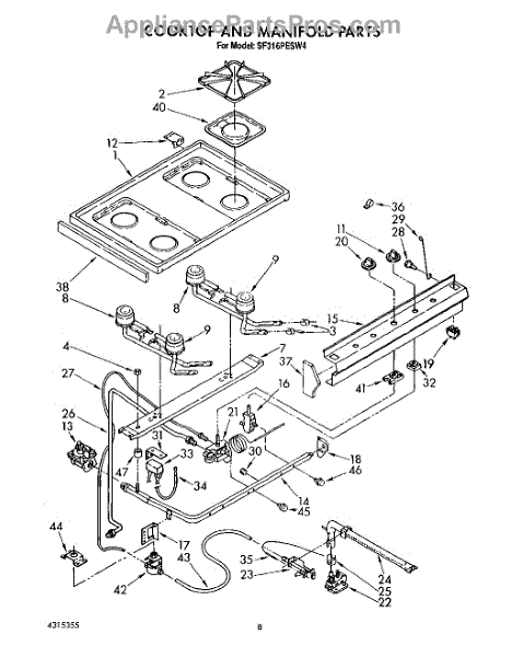 Parts for Whirlpool SF316PESW4: 06 - Cooktop And Manifold, Lit / Optional Parts