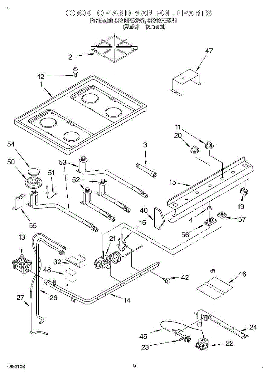 Parts for Whirlpool SF318PEWN1: 03 - Cooktop And Manifold, Literature Parts