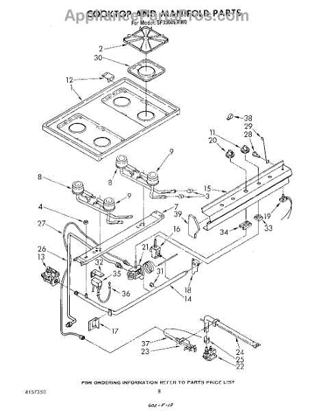 Parts for Whirlpool SF3300ERW0: 06 - Cooktop And Manifold , Literature And Optional Parts