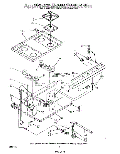 Parts for Whirlpool SF3300ERW3: 06 - Cooktop And Manifold , Literature And Optional Parts