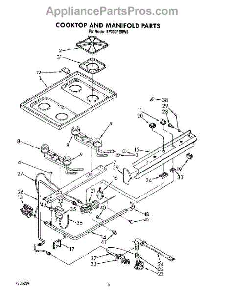 Parts for Whirlpool SF330PERN6: 06 - Cooktop And Manifold, Lit / Optional Parts