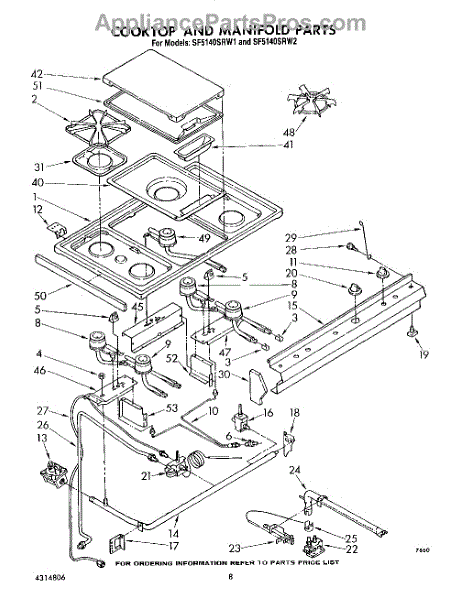 Parts for Whirlpool SF5140SRN1: 07 - Cooktop And Manifold, Lit / Optional Parts